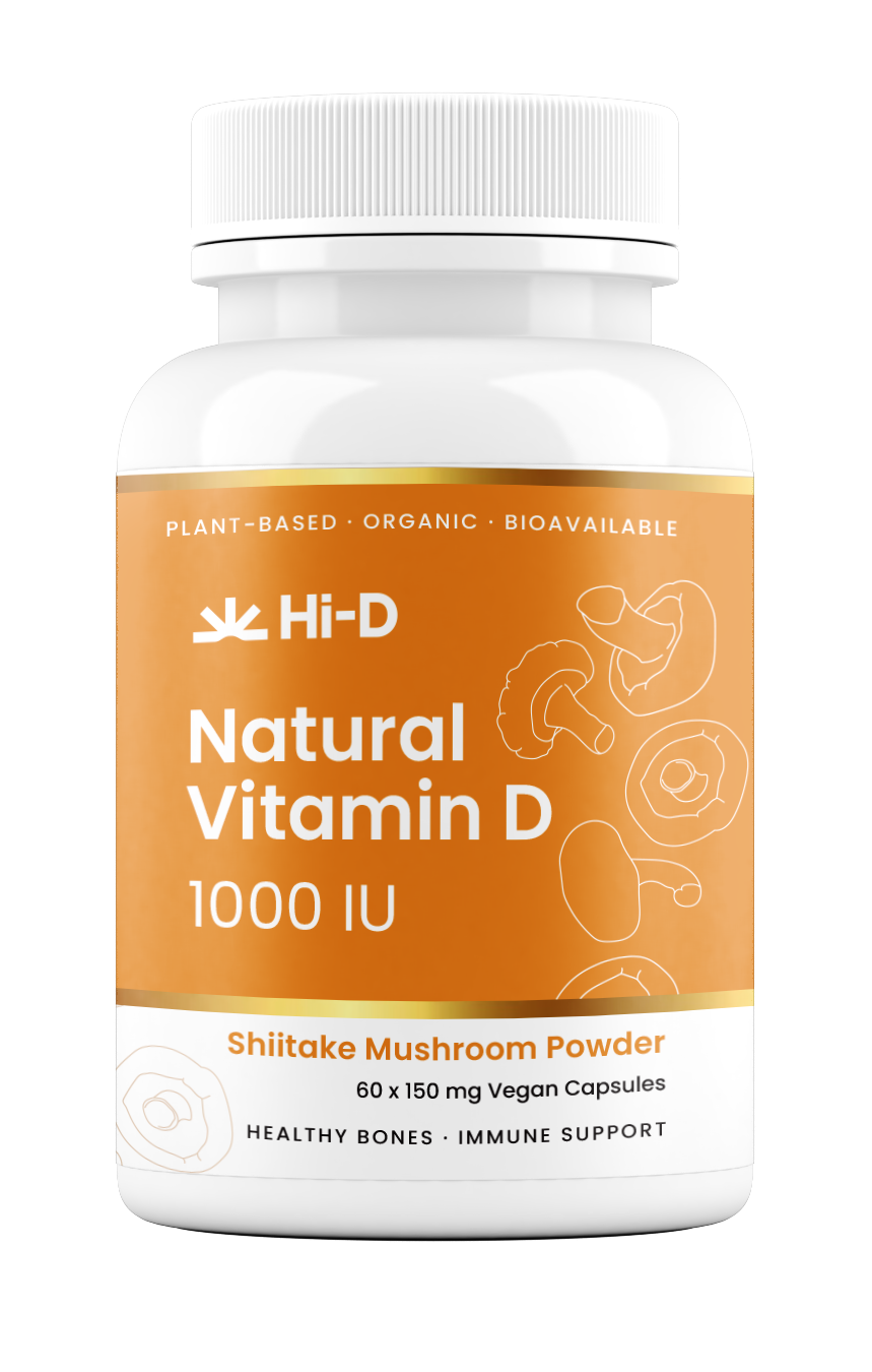 Hi-D Natural Vitamin D 1000 IU - 60 Capsules is a whole food, plant based Vitamin D made from 100% Organic Shiitake Mushrooms.