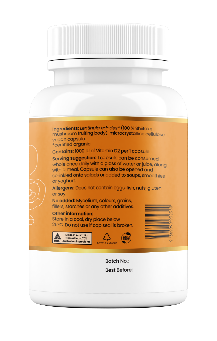 25mcg Vitamin D2 (ergocalciferol from Shiitake)